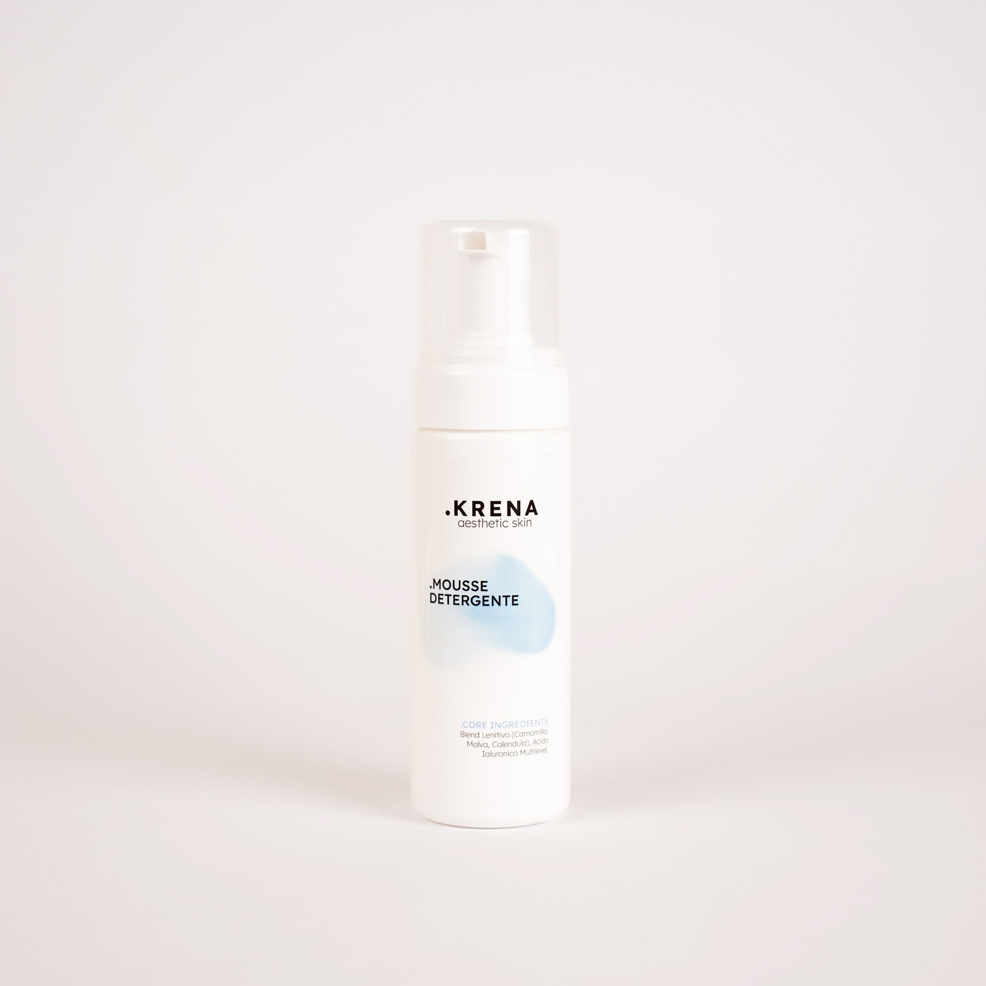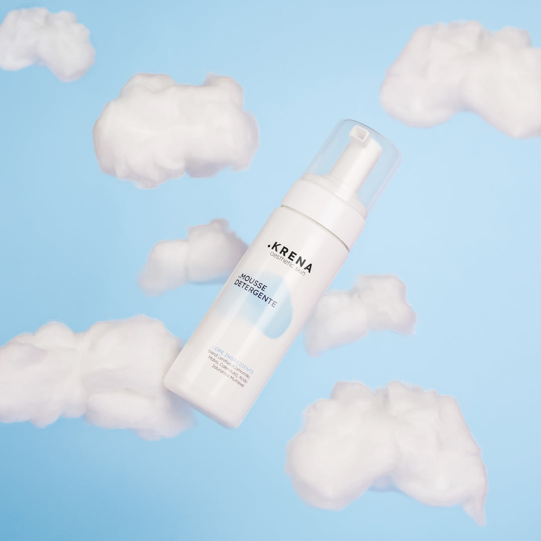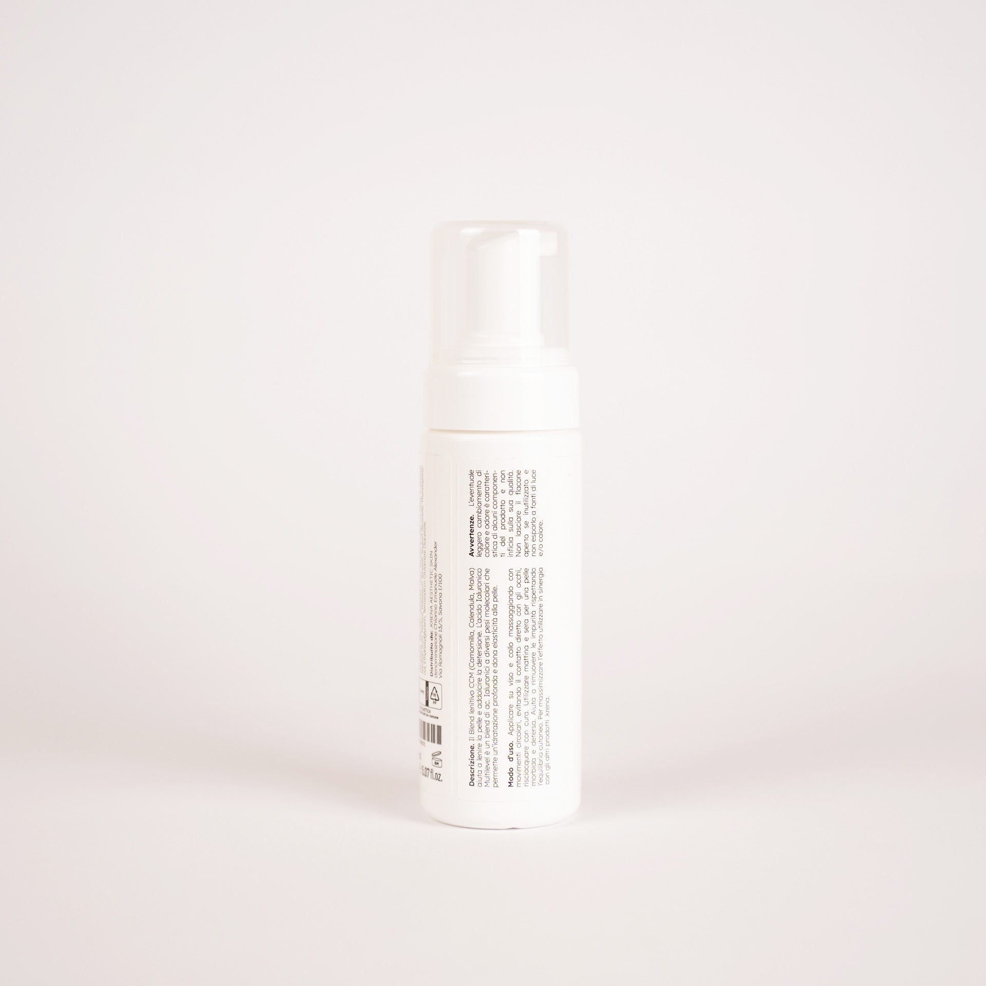 Mousse detergente arricchita con Blend lenitivo CCM (Camomilla, Calendula, Malva) e Acido Ialuronico Multilevel atti ad addolcire la detersione, lenire e idratare la pelle in profondità.